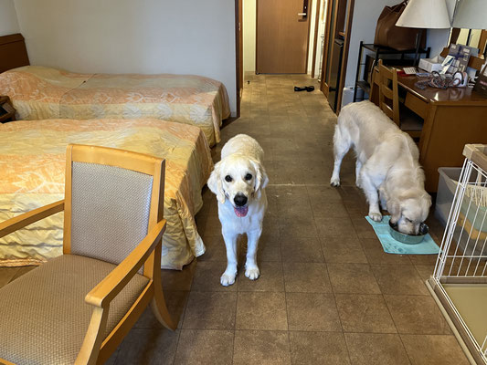 この日も暑い中、よく頑張ってくれました!ドッグフレンドリーのホテルに泊まって、しっかり休息です。
