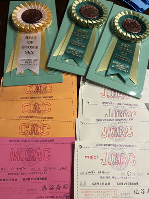 セイラちゃんチャンピオン完成、T君もジュニアチャンピオン完成です!オーナーJさん、おめでとうございます♡
